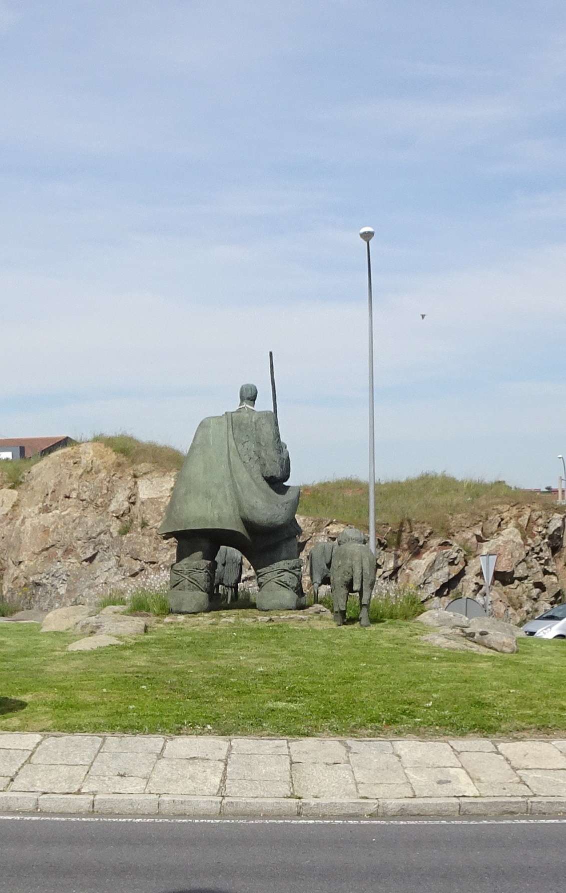 Entre el Parque de la Dehesa y el del Alto Clamores hay una rotonda en la que se ha colocado la efigie de un pastor con su perro y unas ovejas. Da sentido al tema de los parques. Pero yo miro al pastor, me fijo en su diminuta cabeza y en sus gruesas pantorrillas; luego comparo al pastor de la estatua con el de la fotografía de los pastores en día de feria y me preguntó sobre lo que el escultor quiso trasmitirnos con su obra.