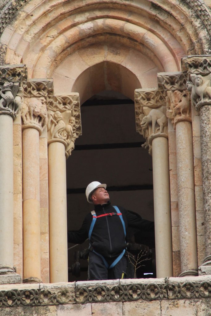 El Obispado retira la veleta de la Torre de San Esteban entre espectaculares medidas de seguridad.