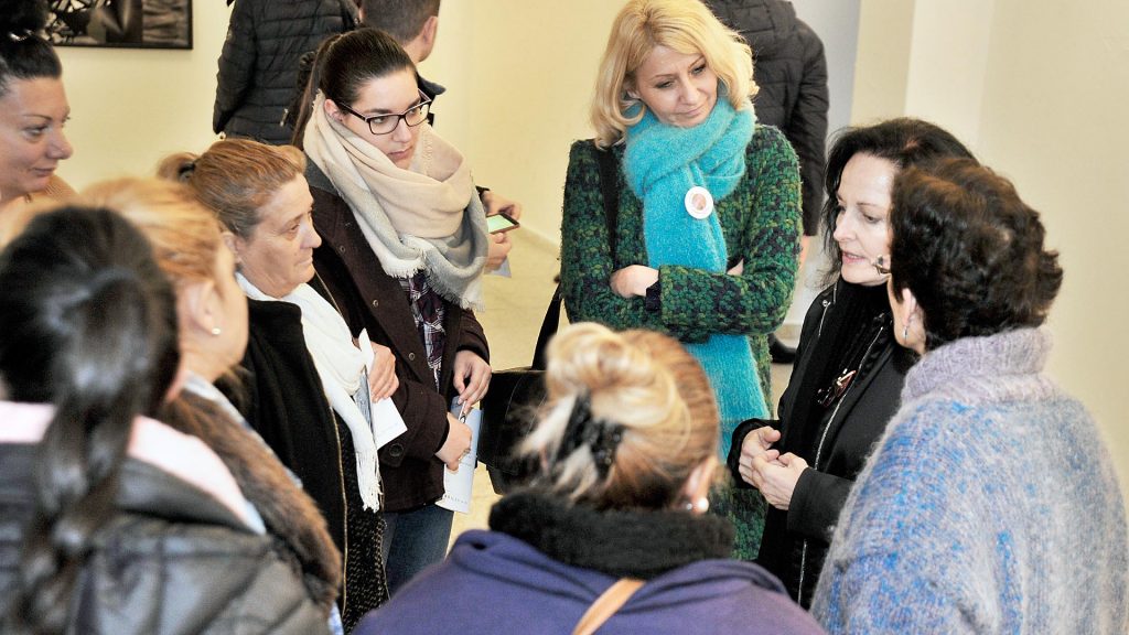 Isabel Muñoz (d) conversa con un grupo de mujeres de etnia gitana