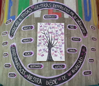 Varias alumnas de Segundo de Bachillerato del IES Marqués de Lozoya llevaban días preparando actos en torno a este 8M. Este año, al caer en domingo, no se ha convocado huelga estudiantil, y ellas han tenido la iniciativa de moverse y realizar otro tipo de actividades con el mismo fin: visibilizar a la mujer en pro de la igualdad. Para ello, se pusieron de acuerdo en organizar la Semana Morada, ya que el color morado hace referencia al día de la Mujer. Una de las propuestas más vistosas ha sido la realización de un mural en la fachada exterior del pabellón, dentro de las instalaciones del centro. Con permiso de la directiva del instituto y en recreos y horas libres, las alumnas han realizado un mural que cuenta con el símbolo de la mujer, manos violetas, el lema de la campaña de este año ‘Feminismo para una transformación social’, y otro lema, consigna usada estos días: “por mí y por todas mis compañeras”. Igualmente, realizaron sus propias camisetas que lucieron ayer en el recreo poético, un momento de reflexión en el que los manifiestos y las reivindicaciones se hicieron sonar en el hall del centro. el objetivo, como ellas mismas explicaron, fue situar y concienciar a los presentes de lo que se quiere lograr con días como el de ayer o como el domingo. El momento más emotivo llegó de la mano de la música, cuando los alumnos se unieron para cantar la canción ‘Lo que es nuestro’ de María Gil.