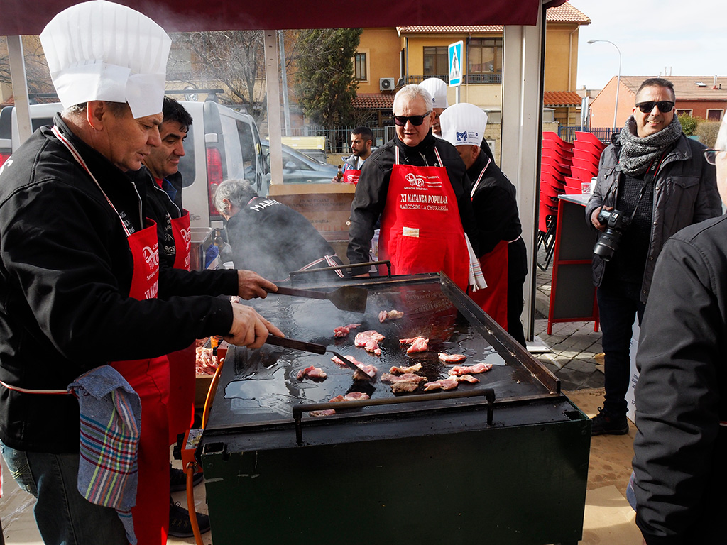 La matanza popular organizada desde la Asociación de Amigos de la Churrería congregó a centenares de personas que disfrutaron de los manjares elaborados por los cocineros voluntarios.