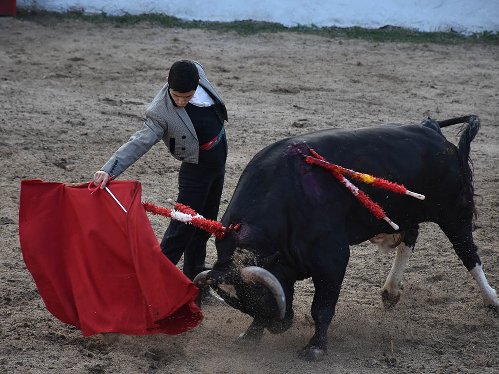Cerró el festejo el alumno de la Escuela Taurina Provincial de Segovia Jorge Oliva, muy decido. El segoviano dejó pares de banderillas de mérito y después firmó importantes pasajes al natural ante un buen ejemplar de Cayetano de Frutos. La ambición del novillero de Aldea Real fue premiada con dos trofeos para cerrar un exitoso festival que supuso la reinauguración del coso ‘Ángel Benito’.