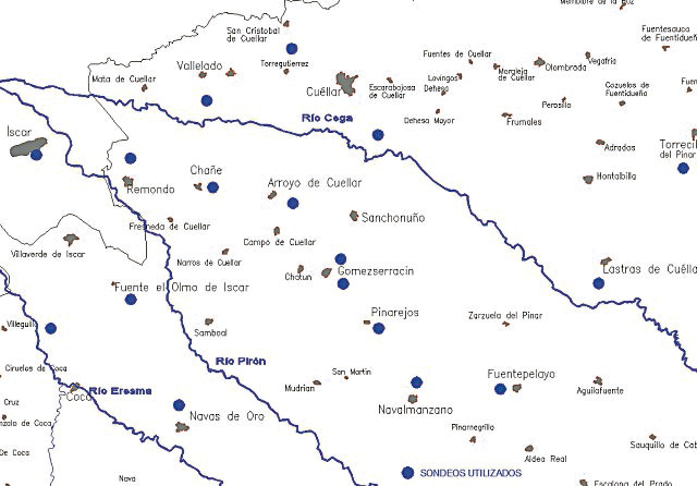 Desde un punto de vista cuantitativo y sin entrar a valorar la calidad de estas aguas que serían objeto de otro tipo de trabajo, se ha realizado un estudio sobre diecisiete (17) sondeos activos y que fuesen representativos del cuadrante noroeste de la provincia de Segovia, con el objetivo de conocer su estado y si existe sobreexplotación (Fig. 1).