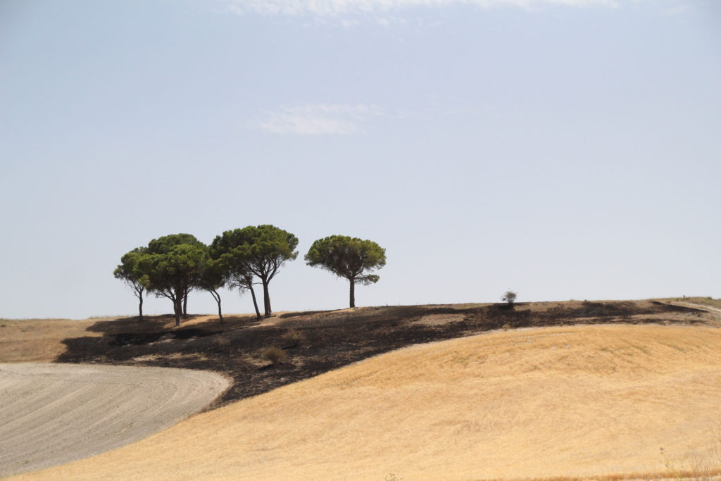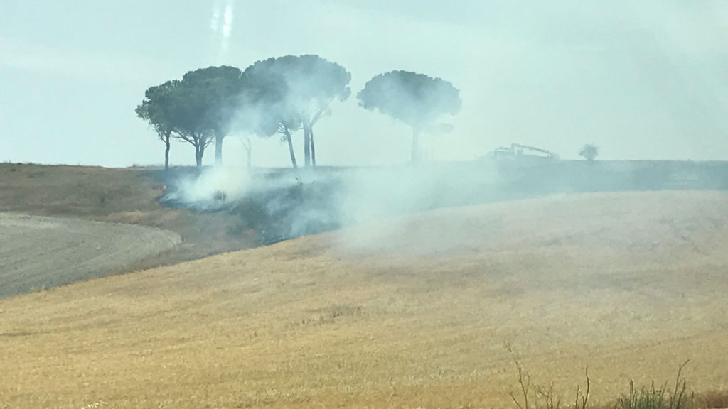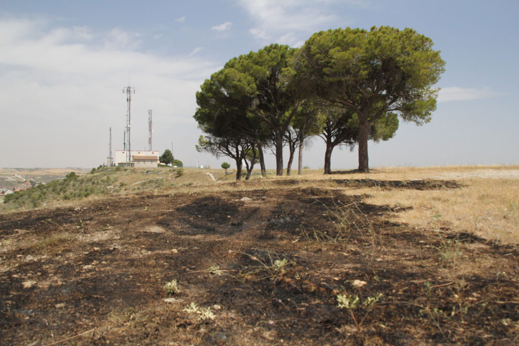 A pesar de que la imagen es impactante, no ha habido que lamentar más daños que varios metros de terreno calcinado; por suerte, no ha afectado a los emblemáticos pinos que se alzan sobre el paisaje, símbolo también del entorno de Cuéllar.